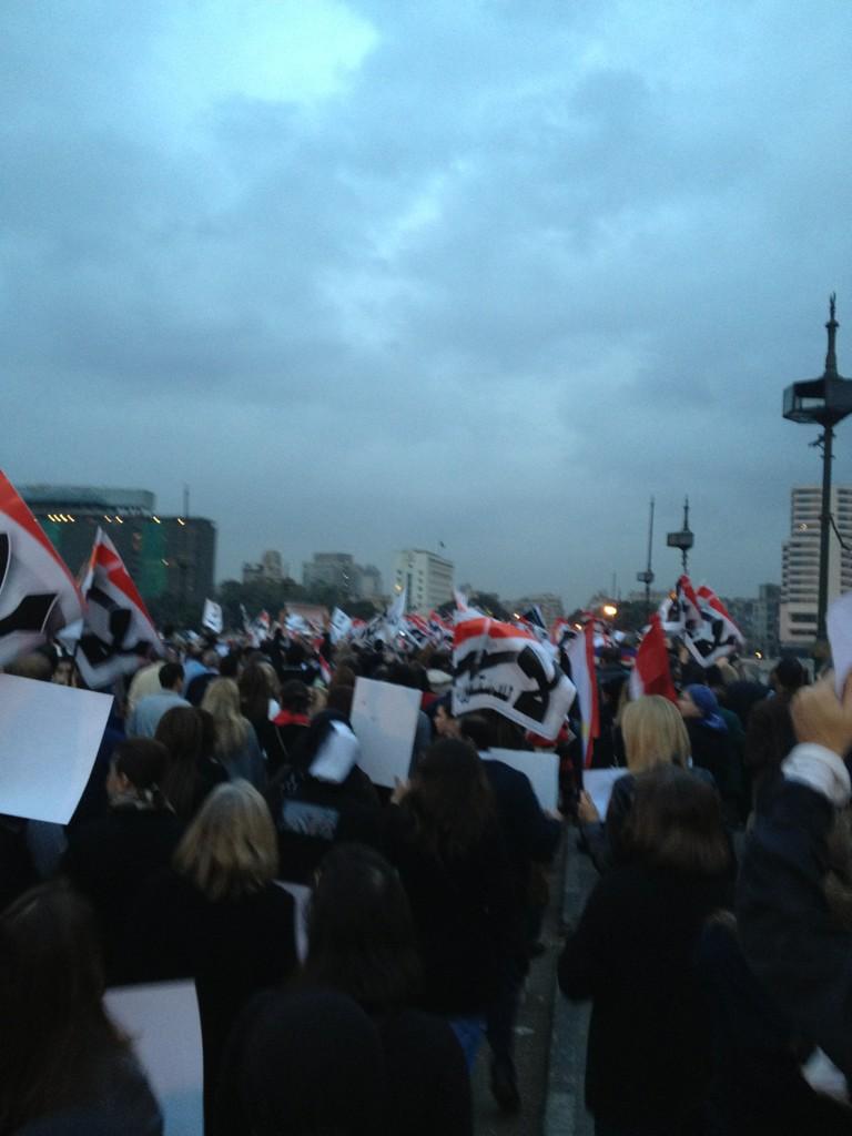 وعلى مدار الثلاثاء الماضى والجمعة الماضية، تجمع نحو 200.000 متظاهر فى ميدان التحرير لمطالبة مرسى باإلغاء الإعلان الدستورى. وعلى نحو 10 أيام يعتصم المتظاهرون فى الميدان للإستعداد لتنظيم مسيرة كبيرة فى إتجاه القصر الرئاسى.